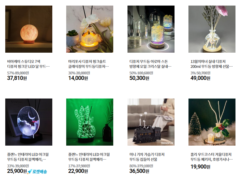 디퓨저 세트, 머그컵, 타월 세트 와 같은 아이템을