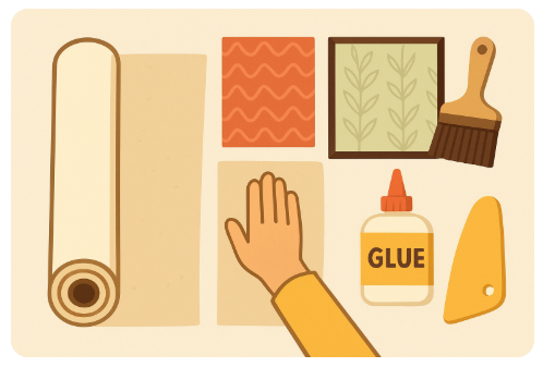 - 합지/실크: 풀을 벽지 뒷면(또는 벽)에 바르고 잠시 두었다가 붙임.